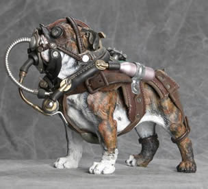 From Time machines to adventures of any kind, your Steam Pup will love a good puzzle and interaction with you. Isn't that what Steampunk is? Parallel universes and the mysteries of science. Who knows, given enough time and treats, he might invent a flux capacitor and time travel.